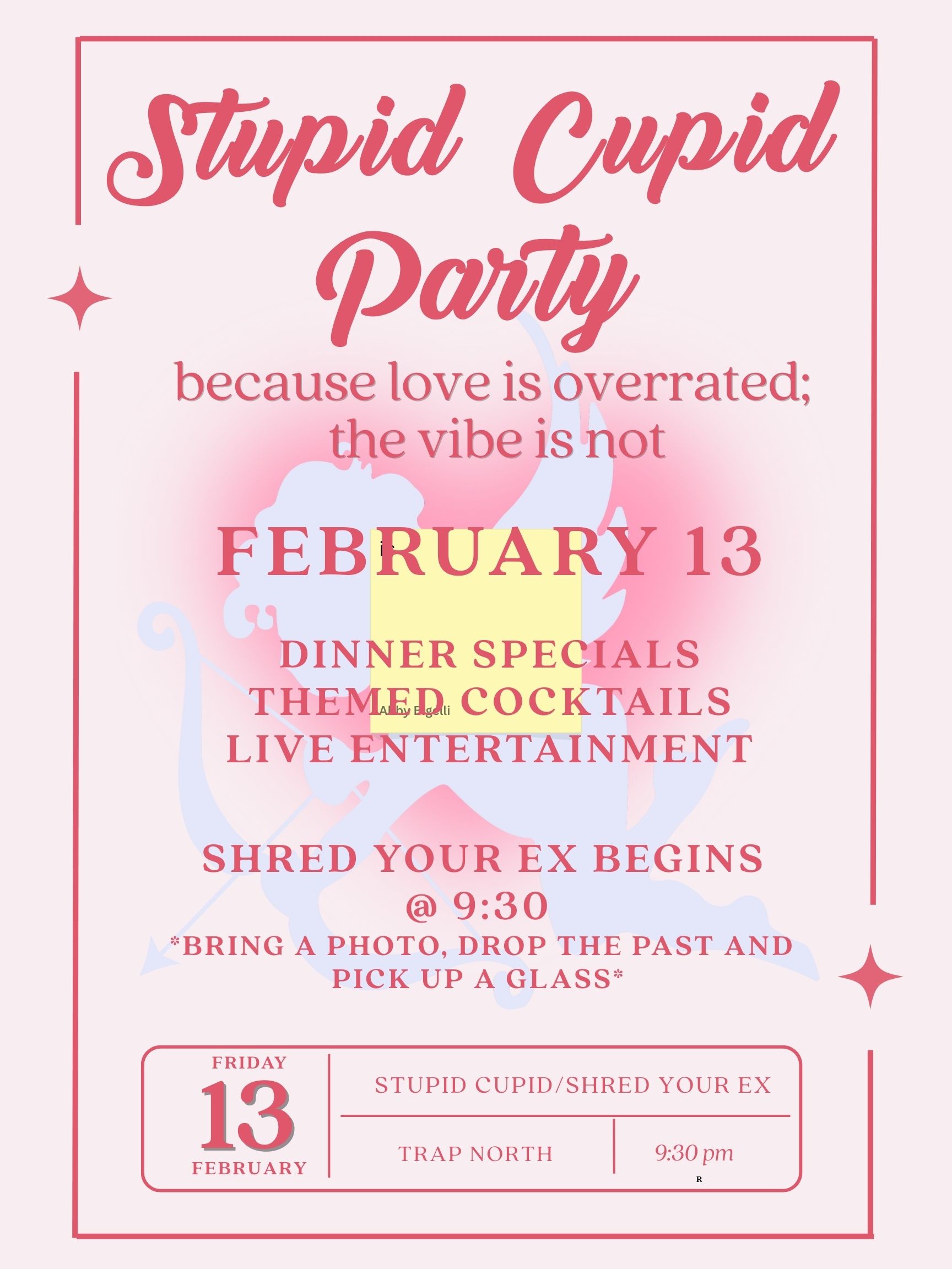 Anit Valentine’s Day/Stupid Cupid Dinner Followed By “shred your ex” with DJ Face at EG & DJ Barado at Trap North.